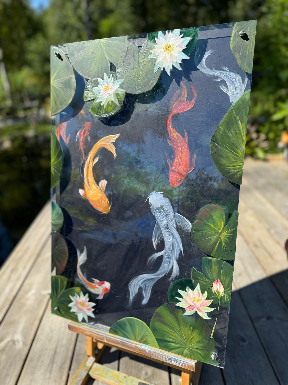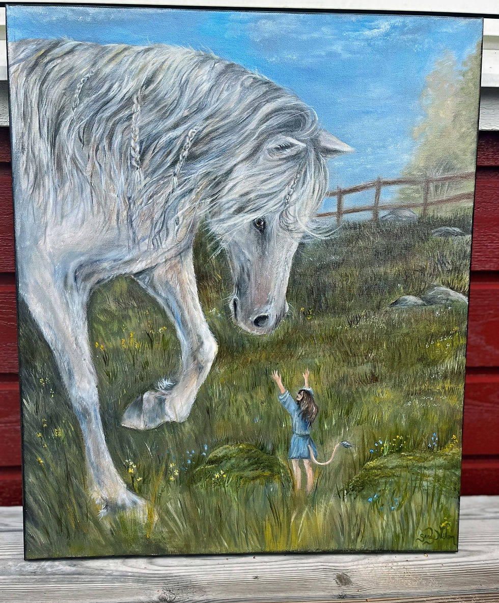 (Att det är möjligt att skicka en oljemålning såpass snabbt trots att en oljemålning härdar i upp till 2 år, är att jag dels arbetar med vattenlösliga oljefärger som torkar ngt snabbare samt oftast jobbar i många många många tunna lager för att uppnå det resultat jag vill. Innan leverans och när tavlan är yttorrt lägger jag på ett lager varnish (glossy eller matt beroende på Ditt önskemål) av en särskild typ som tillåter att oljemålningen genomhärdar efteråt och ändå är fullt skyddad och klar!